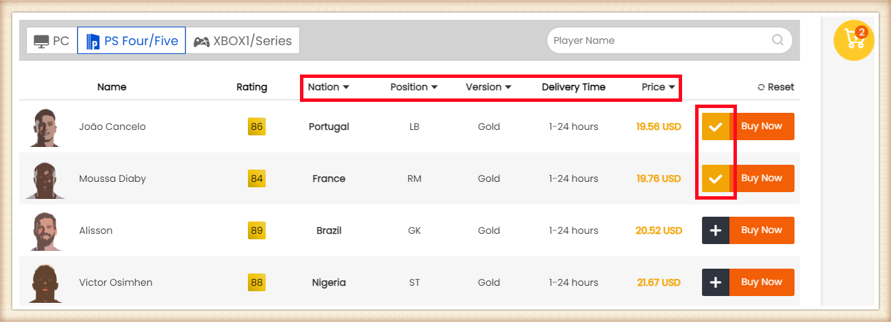 2. Choose your console and the players you want to buy.