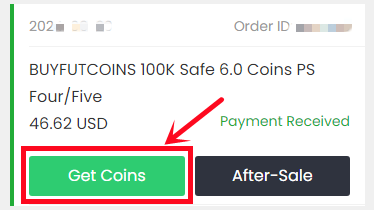 4. Click "Get Coins" at the bottom, find your order, and click "Get Coins".