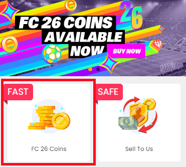 1. Please log in to your member account before placing an order, click "FC 26 Coins".