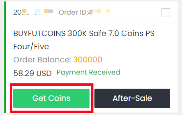 4. Click "Get Coins" at the bottom, find your order, and click "Get Coins".